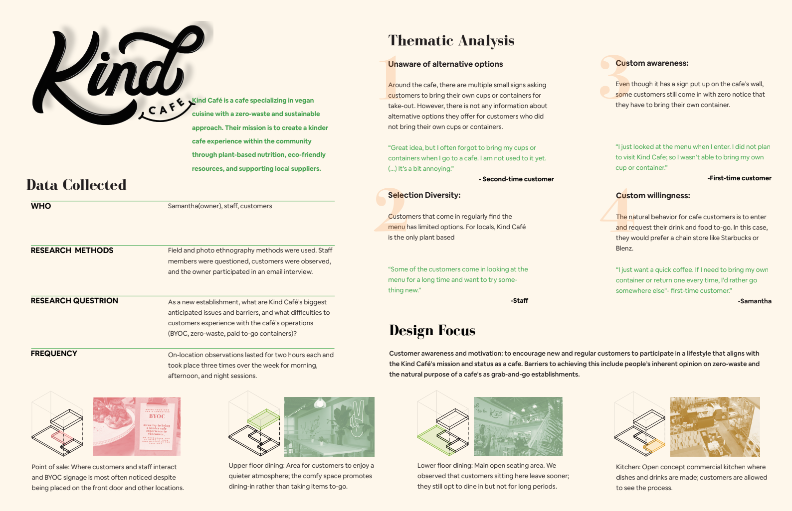 A design solution that addresses the brand marketing needs of @kindcafeyvr. The objective is to enable Kind Café and its customers to actively contribute to environmental preservation by adopting a zero-waste approach through an innovative online ordering app/kit. In addition, this solution aims to enhance brand visibility, reputation, and social impact.