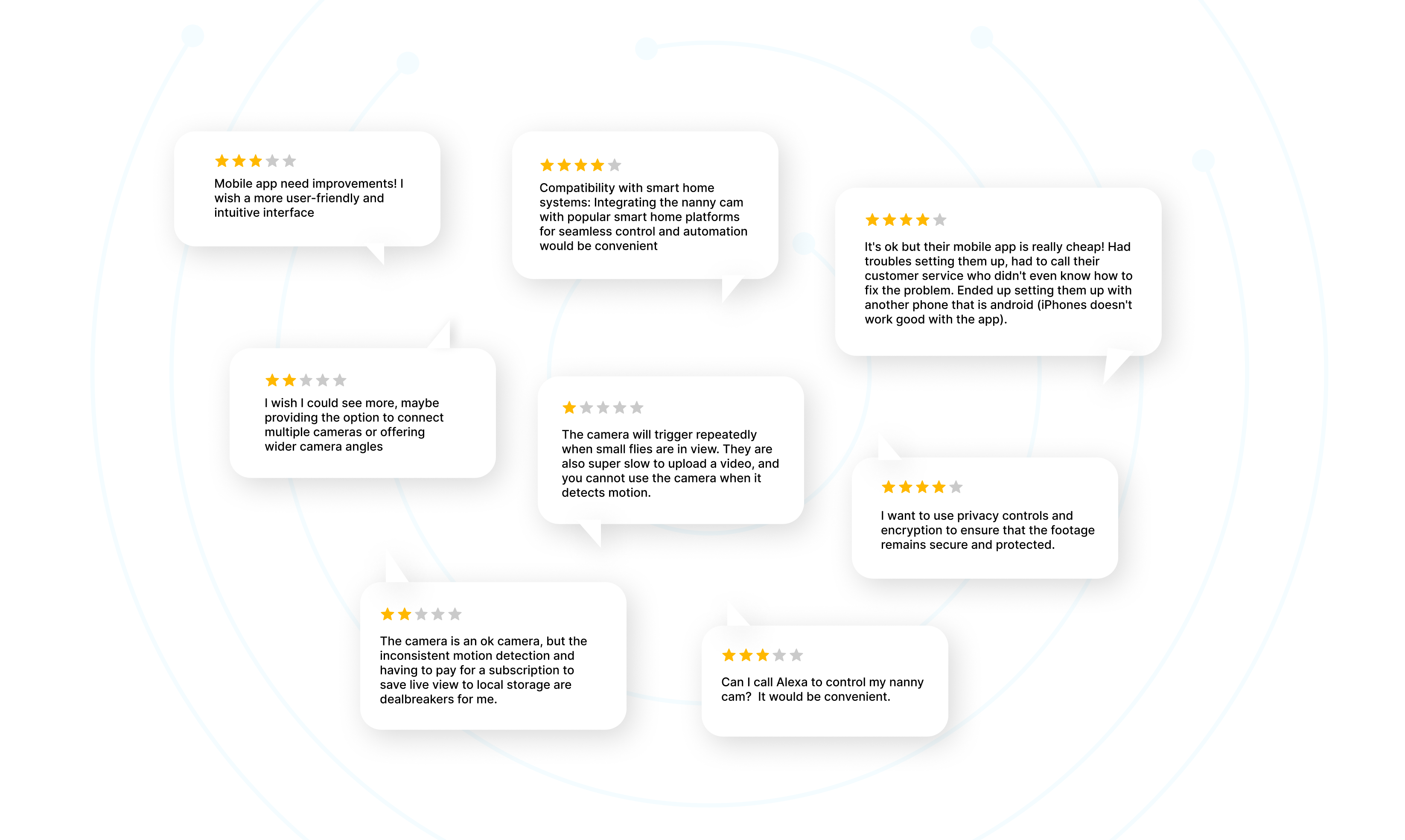 After having the furture direction, I conducted a desk research and performed a competitor analysis on nanny cams, I have identified four areas of possible major improvement that exist in current nanny camera market.