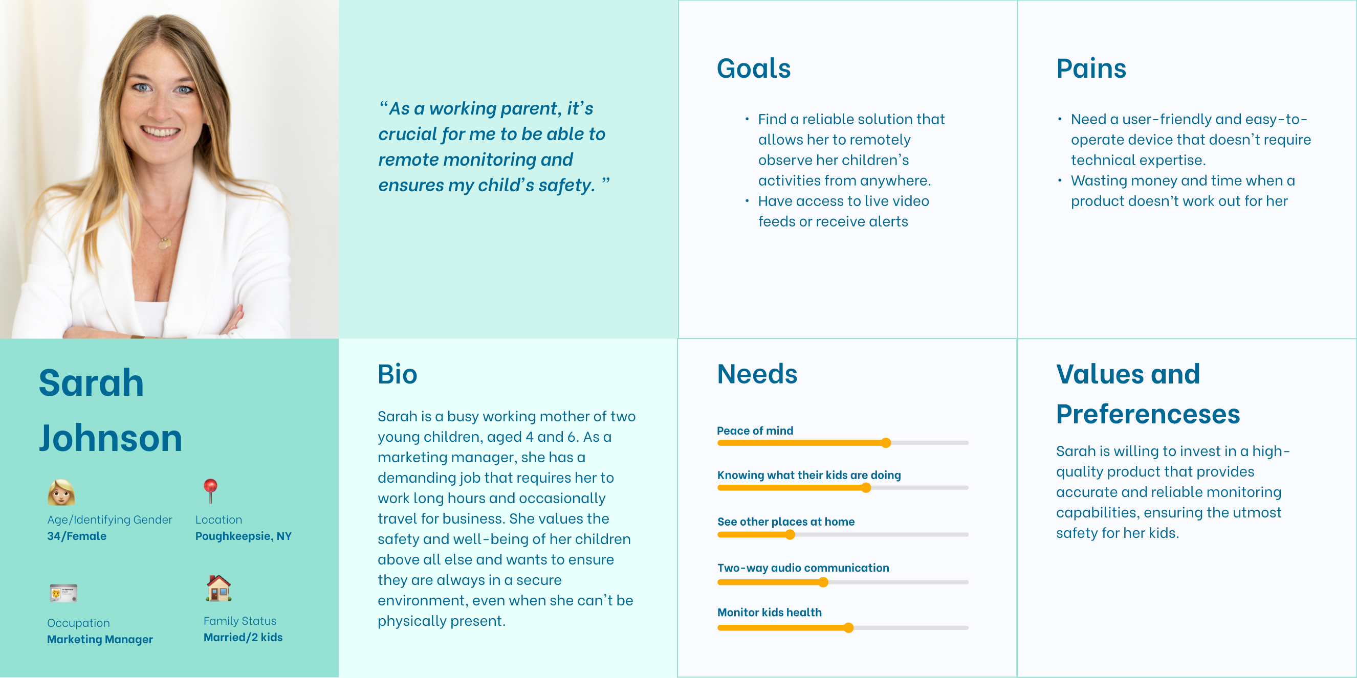 Our target audience comprises safety-conscious parents who prioritize the well-being of their children and seek proactive measures to monitor their home potential dangers and hazards. They are actively searching for advanced solutions to ensure the utmost safety and security of their kids.
